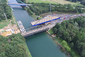 Einschwimmen des Stahlüberbaus bei der Kanalbrücke Dorsten-Hervest